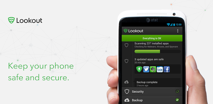 Backed by the Mobile Threat Network, Lookout protects you from bad stuff – like malware and viruses - that can slow down your phone or make unauthorized charges to your wireless bill with over-the-air, real-time updates.